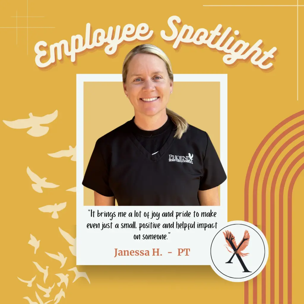 We asked, “What would you like to tell others contemplating working at Phoenix Home Care & Hospice?” Her response was, “Phoenix is a great place to work. There are many opportunities for professional and personal growth. There is a level of expectation and accountability which makes it a strong team.”