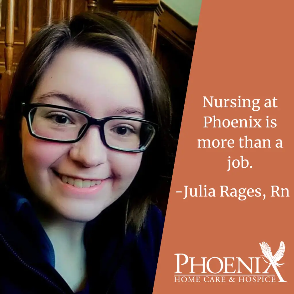 We asked Julia to share what she would like people to know who are contemplating a career with Phoenix. She said, “Go for it! Phoenix is a great place to work. Although home health is often challenging, Phoenix has offered employees genuine support that can be elusive in the nursing field.”