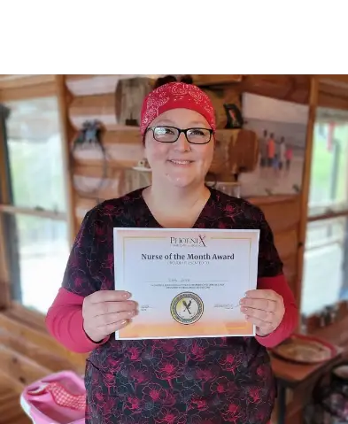“Kianna Lawrence has only been with us since July of this year, but that has not kept her from soaring with Phoenix! Because of her flexibility and servant’s heart, 5 little patients did not have to go without a nurse. Sometimes traveling over 40 miles one way!! Team Phoenix is celebrating Kianna as she highlights Phoenix’s 8th principle of Flight- “Celebrating the difference you make in the world”- and she did it, one patient at a time! Outstanding work Kianna.”