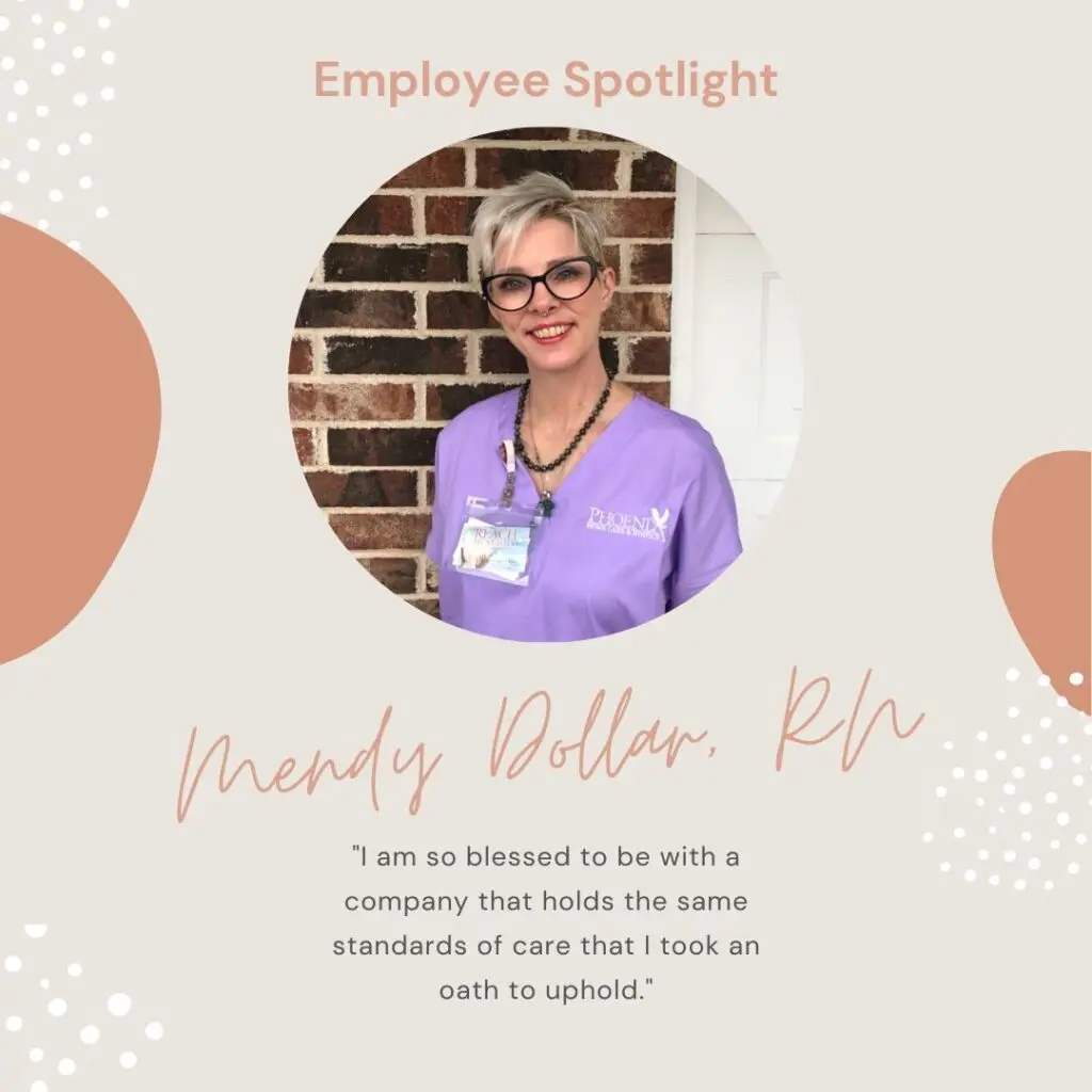Meet Mendy Dollar, RN from Joplin. Mendy has a huge heart and passion for home care. We are so thankful to have her onboard at Phoenix!