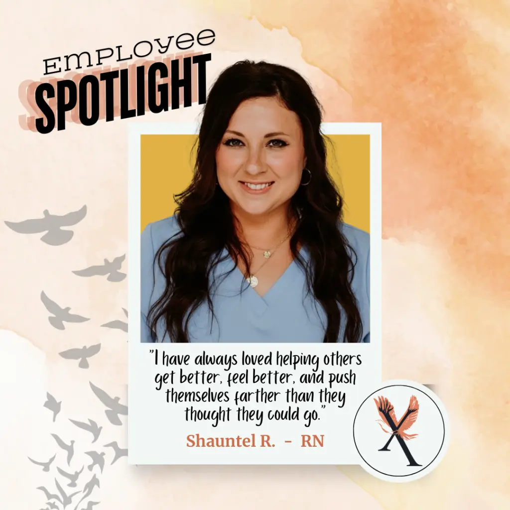 Of our X Factor (an important element of our unique Phoenix values), Shauntel says, “I think it’s very important to embody all of these qualities when caring for other individuals. Home health requires you to use previous knowledge and apply it within that setting. Though you can seek help, home health means you’re doing it alone without the instant guidance of others. You must have a good understanding and wide knowledge base for the person you’re caring for. There comes a lot of patience and sometimes certain needs of the patient can be time consuming. Loving what you do and giving that compassion through your care is extremely important. These patients depend on you whether it be short term or long term care, they need a nurse that desires to fulfill their needs.”
