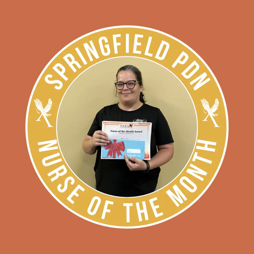 Meet the Springfield PDN team’s latest Nurse of the month, Amelia! Amelia exemplifies the 5th Principle of Flight “Be the wind, serve others.” She has the biggest heart and falls in love with all of her patients.